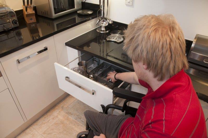 Wheelchair Seated Light Switches | Low Hob & Low Sink With Wheelchair Access | Emergency Ceiling Drop Cords | Grab Rails In Bathroom